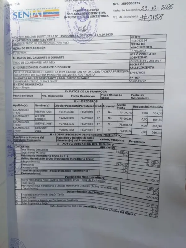 La ciudadana ve muy injusto que alguien se quiera quedar con la herencia que su padre, producto de su trabajo y jubilación, les dejó a ella y demás hermanos. «Yo no tengo casa propia, esa es la única propiedad».