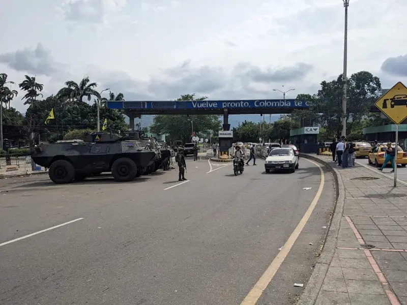 Los funcionarios del Ejército y tres tanquetas, se encuentran apostados a escasos metros del puente internacional Simón Bolívar, justo al lado de las casillas de la Dirección de Impuestos y Aduanas Nacionales (DIAN).