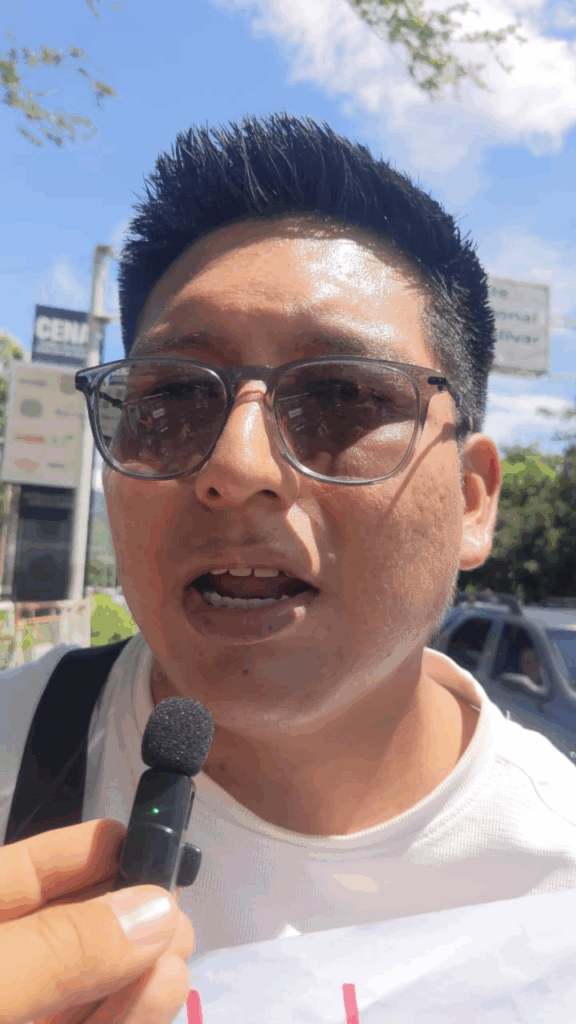 La pancarta la desplegaron a un costado del tramo binacional para no interrumpir el tránsito de vehículos. Tenía dos fotografías del ciudadano con la siguiente frase: «Libertad para Petter Padilla Rea. Desaparecido el 27 de julio de 2025. Exigimos su libertad ya».