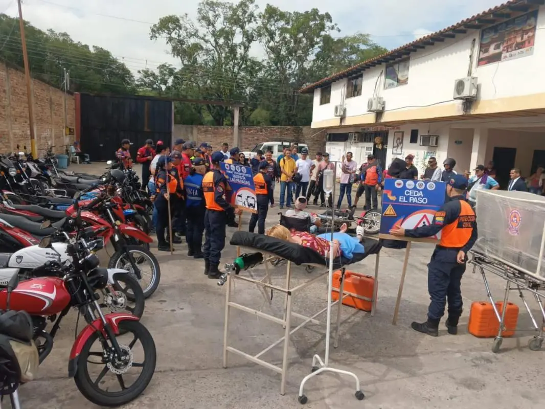 Durante la actividad, que se realizó en el estacionamiento de la Alcaldía, los funcionarios escenificaron una vez más accidentes de tránsito, donde simularon heridos de gravedad y pérdidas de vidas, escenarios que pueden suscitarse en cualquier hecho vial.
