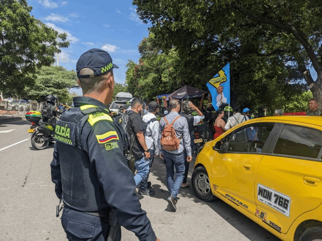 Durante su recorrido, hubo un fuerte despliegue policial encargado en la seguridad del precandidato. Oviedo aspira a la presidencia de Colombia bajo el sello de independiente.