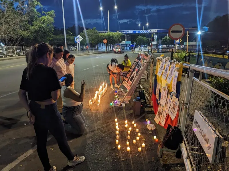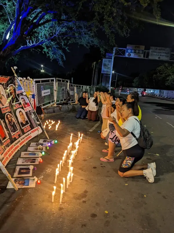 A escasos metros de la entrada al puentes internacional Simón Bolívar, lado colombiano, los ciudadanos desplegaron las fotos de sus allegados y dispusieron de velas como símbolo de que la esperanza se mantiene encendida para su pronta excarcelación.