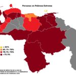 En cuanto a las regiones donde los ingresos no alcanzan para adquirir la Canasta Básica Alimentaria, Táchira registra un 75.4%, mientras que en situación de pobreza extrema Apure lidera con 80%, seguidos de Sucre, Amazonas y Bolívar con 79%.