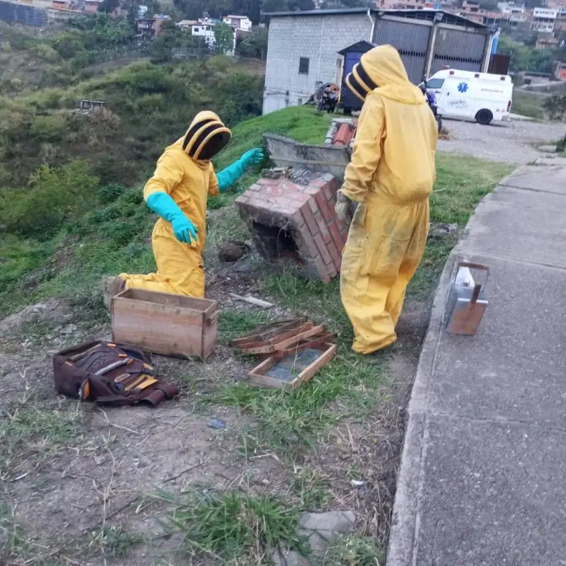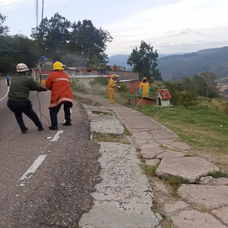Los funcionarios, con la colaboración del apicultor Jesús Hernández, lograron extraer con éxito los panales para garantizar la continuidad de la colonia.