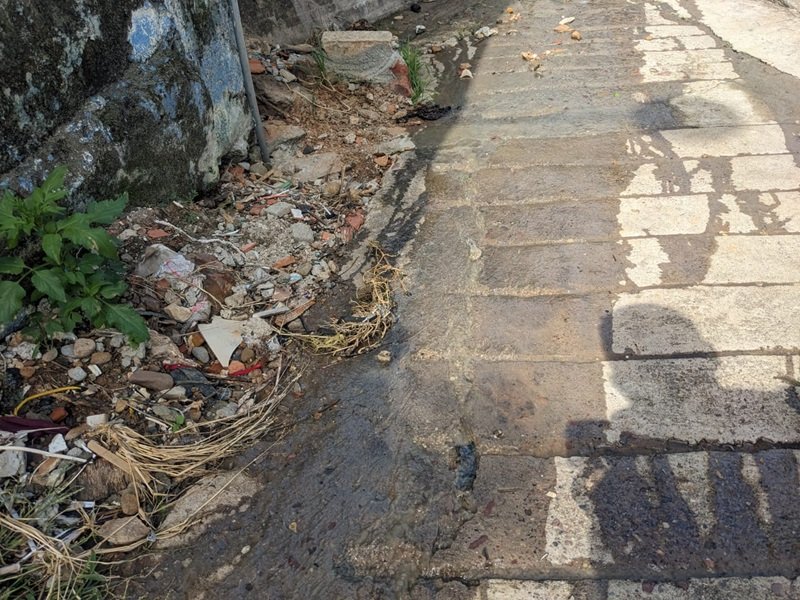 El agua brota de una tubería principal y pasa por el frente de las casas. El hedor es insoportable y está afectando a niños, adultos y personas de la tercera edad.