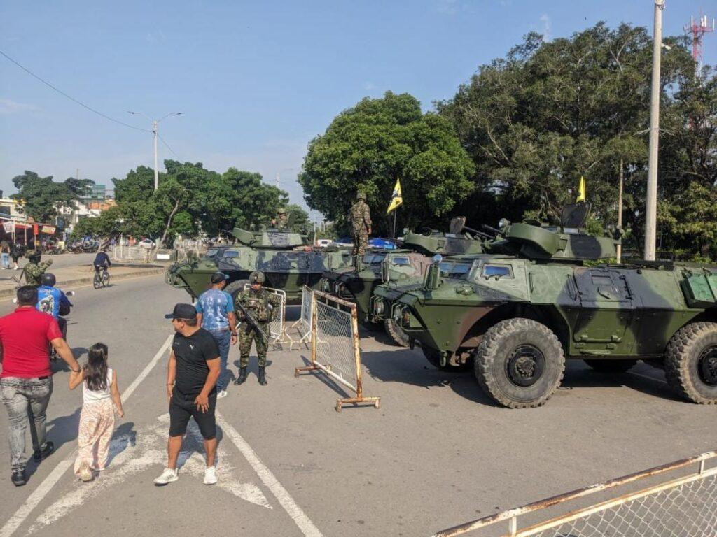 El Ejército de Colombia se mantiene con sus tanquetas en La Parada, en Villa del Rosario. Suma seis días de intensa presencia por los hechos ocurridos en Venezuela.