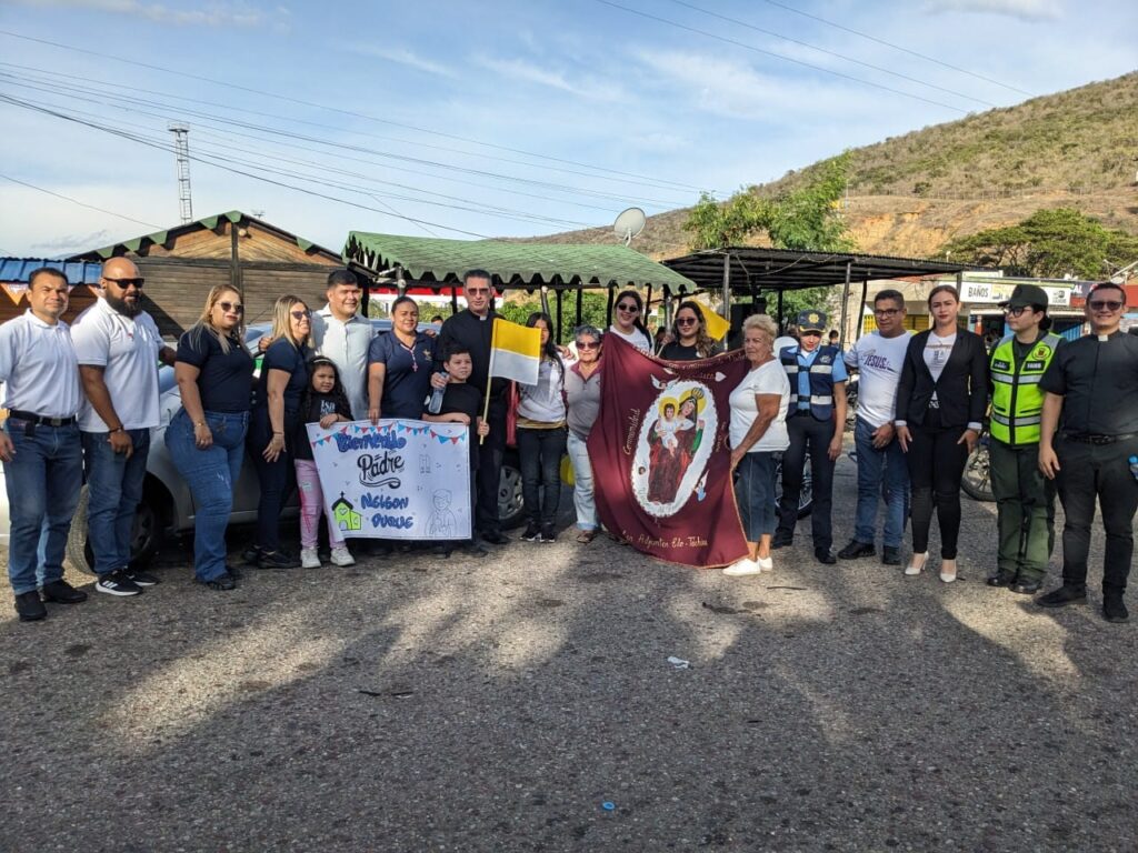 «Bienvenido, padre», era la frase estampada en una de las pancartas con la que feligreses de la Basílica Menor San Antonio de Padua, en el municipio fronterizo Bolívar, se aglomeraron este lunes en el sector de Peracal para recibir a su nuevo párroco, el padre Nelson Duque.