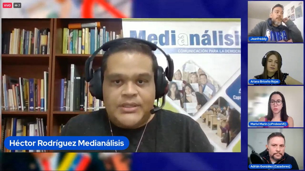 Héctor Rodríguez, periodista y coordinador de proyectos de Medianálisis fue el encargado de conducir el evento que se transmitió en vivo por las plataformas de YouTube y Facebook Live, mientras que el panel de invitados estuvo representado por los periodistas; Jeanfreddy Gutiérrez de Efecto Cocuyo y Ariana Briceño Rojas de El Estímulo, asimismo les acompañó la directora del observatorio digital ProBox, Mariví Marín, y el ingeniero Adrián González, por Cazadores de Fake News.