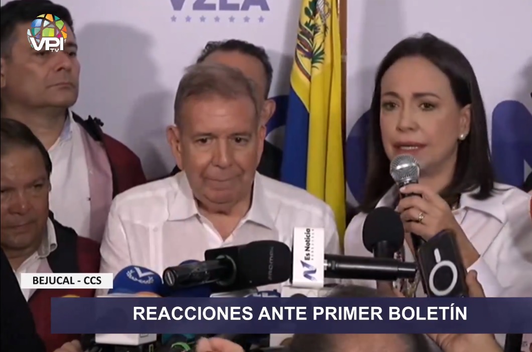 “Sabemos lo que hoy paso”, dijo María Corina Machado en rueda prensa luego de que el Consejo Nacional Electoral (CNE) emitiera su primer boletín de las elecciones presidenciales en Venezuela este 28 de julio, que da como ganador al mandatario Nicolás Maduro con el 51,2% de los votos.
