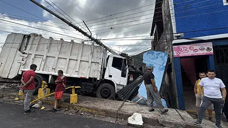 Falla mecánica provocó un choque de camión de desechos contra un poste