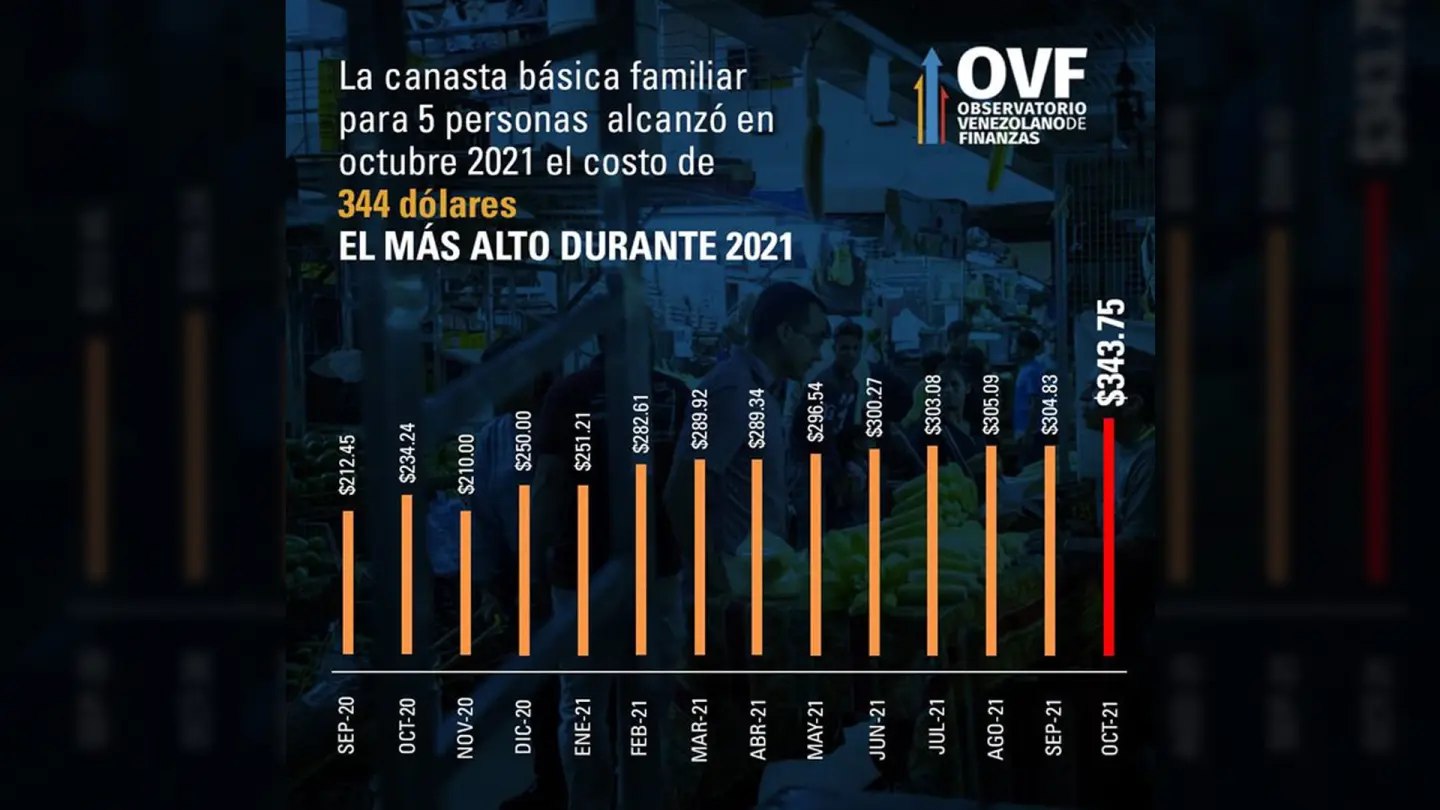 Canasta básica familiar alcanzó en octubre su costo más elevado del año