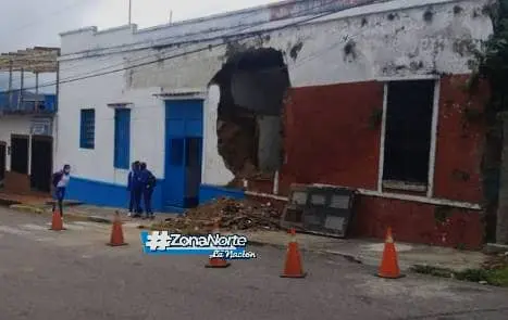 Parte de la fachada de la Unidad Educativa "12 de Febrero" de San Juan de Colón, se derrumbó producto de…