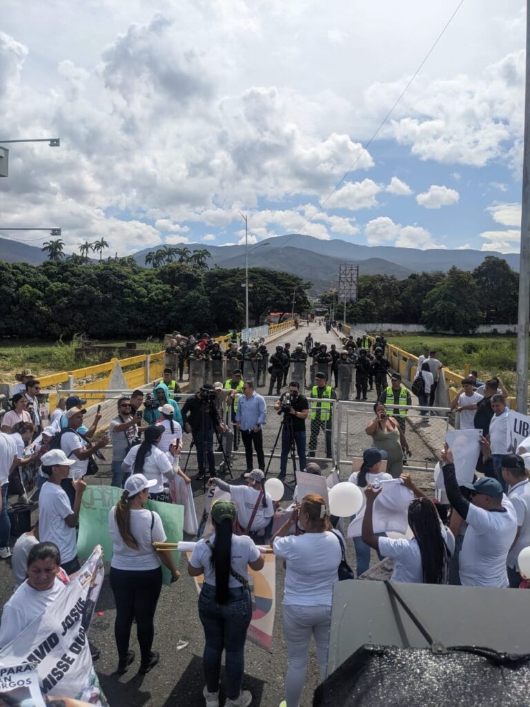 Justo en la mitad del puente internacional Simón Bolívar, los funcionarios de Venezuela atravesaron las vallas ante la protesta que…