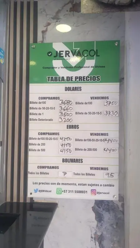 En las casas de cambio de la localidad colombiana de La Parada, pasando el puente internacional Simón Bolívar, la tasa de cambio para la compra era de 0,07 pesos por bolívar y la venta se hacía a razón de 0,09 pesos por bolívar. La cotización de la moneda venezolana para las operaciones por transferencia era más baja aún.