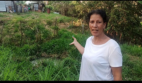 El hogar de Maury Soraya Sánchez Chacón lleva casi dos meses con el pozo que brotó en el patio que da a una parcela donde se acumula la maleza, y por supuesto un antihigiénico embalse en el que las ranas croan alegremente, y del que escurre agua que no para de humedecer y plagar de moho un tramo de la vía principal de Zorca San Isidro, y que es pisado por transeúntes no enterados de la calidad del charco.