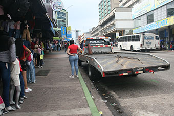 Este viernes las grúas y los funcionarios policiales estaban pendientes de que no cometieran infracciones quienes tengan la intención de estacionar sin pagar en la Quinta Avenida. (Foto/Tulia Buriticá)