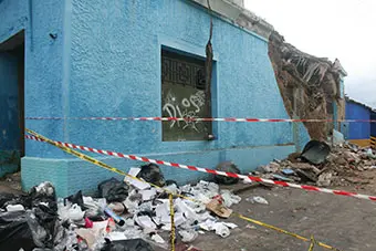 La caída de su estructura obligó cerrar el paso por la carrera 8 entre calles 5 y 4, donde además de los escombros había gran cantidad de basura acumulada. Trabajadores se encontraban al interior de la casa removiendo la parte de la estructura que se vino abajo e identificando aquellas a punto ya de colapsar.