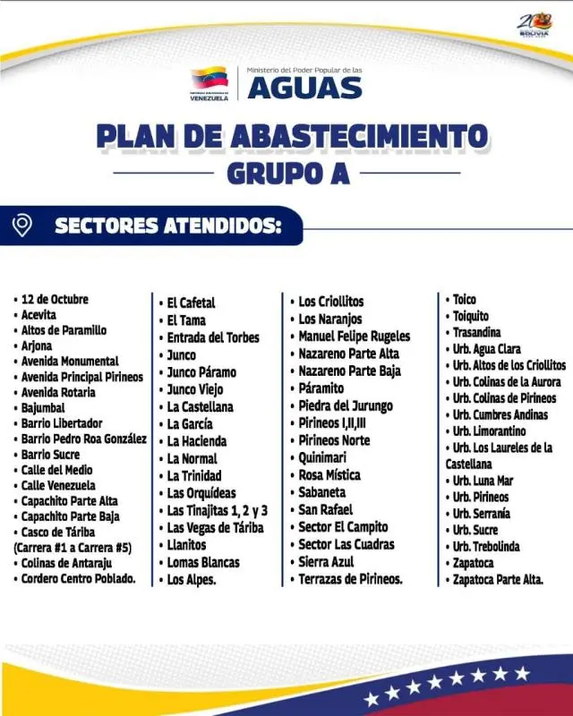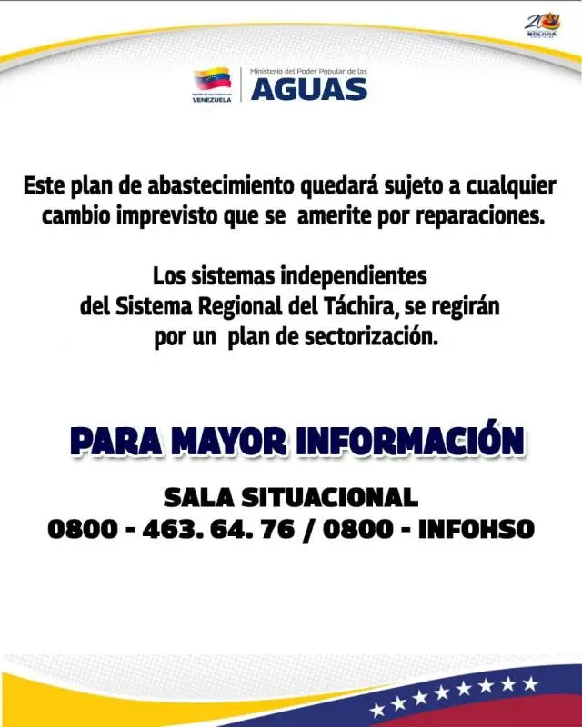 Conozca el Plan de Abastecimiento de agua que inicia este lunes en Táchira