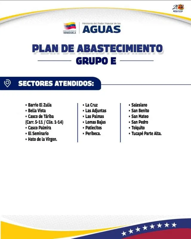 A partir de este lunes 9 de marzo arranca un Plan de Abastecimiento de agua del Sistema Regional del Táchira, informó Hidroven.
