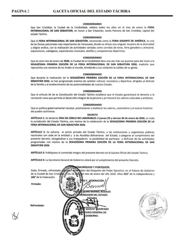 A trevés del decreto las autoridades exhortaron al sector privado, instituciones y organismos públicos nacionales en la entidad “plegarse al cumplimiento” de la resolusión y permitir a sus trabajadores participar y disfrutar de las festividades programadas para estos días. (YR)