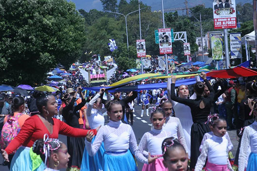 El recorrido de las agrupaciones culturales, de las aspirantes a reina, fue a lo largo de la avenida España de Pueblo Nuevo. Por todos lados hubo presencia de personas y de vendedores