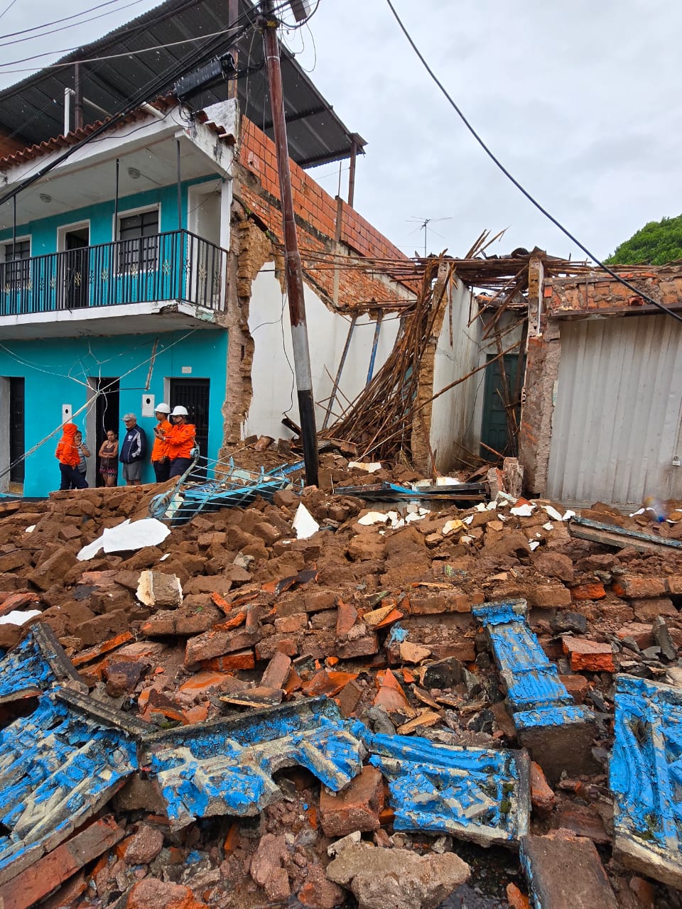 Informó el director del Instituto Autónomo de Protección Civil del Estado Táchira –INAPROCET- Yesnardo Canal sobre el colapso de una fachada de una vivienda ubicada en el Pasaje Cumaná, cuya construcción con paredes de adobe, techo de barro y caña sucumbió ante las lluvias.