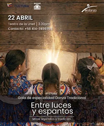La especialidad de Danza Tradicional llevará a escena un guion original de la escuela, titulado Entre Luces y Espantos. Mitos, leyendas y tradiciones. De acuerdo a lo explicado por Adriana Ruiz, maestra de Endanza, este año se presentará una continuación de la historia escenificada el año pasado.