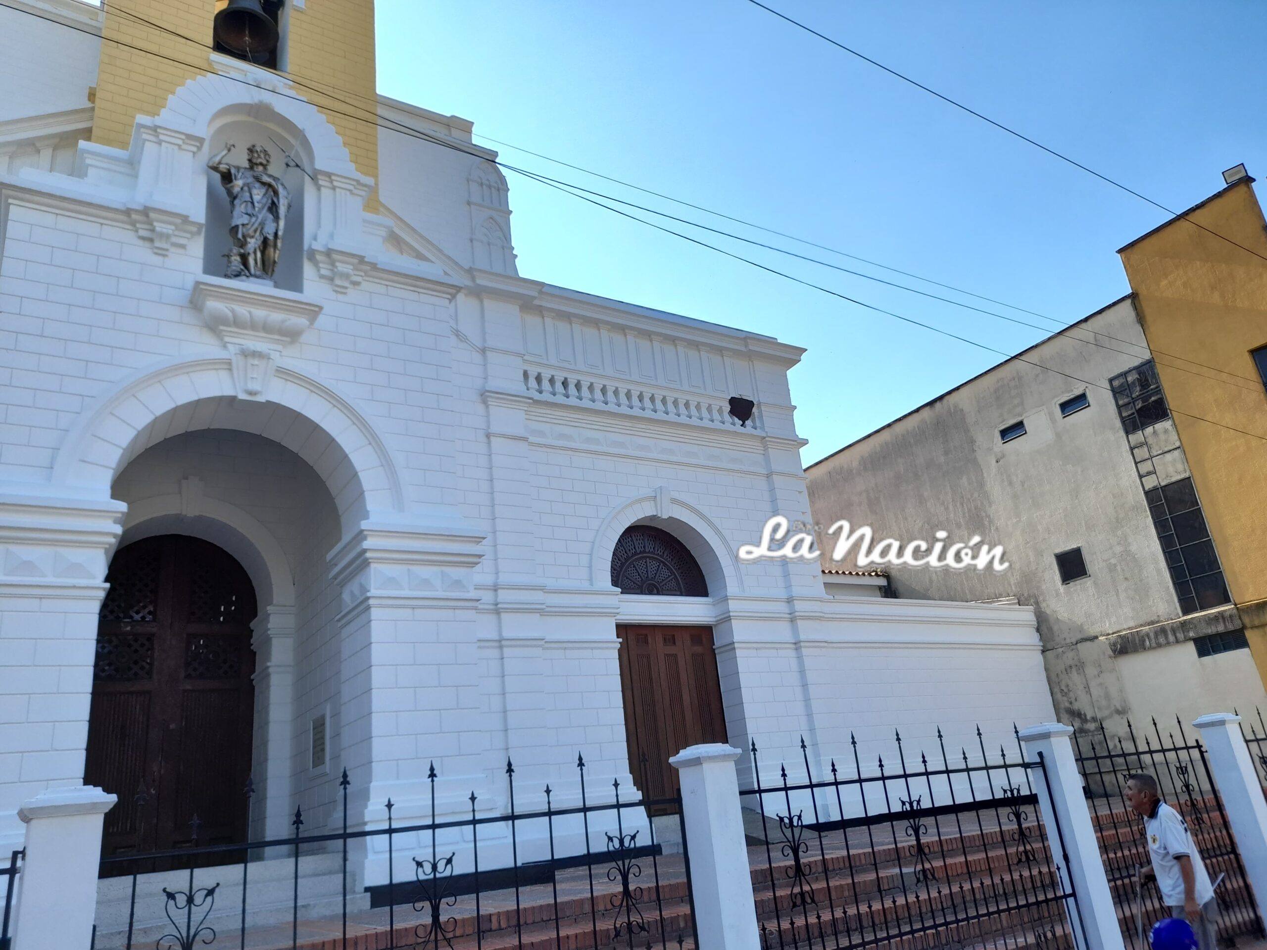 Enjambre de abejas en la fachada de la iglesia San Juan Bautista de Colón