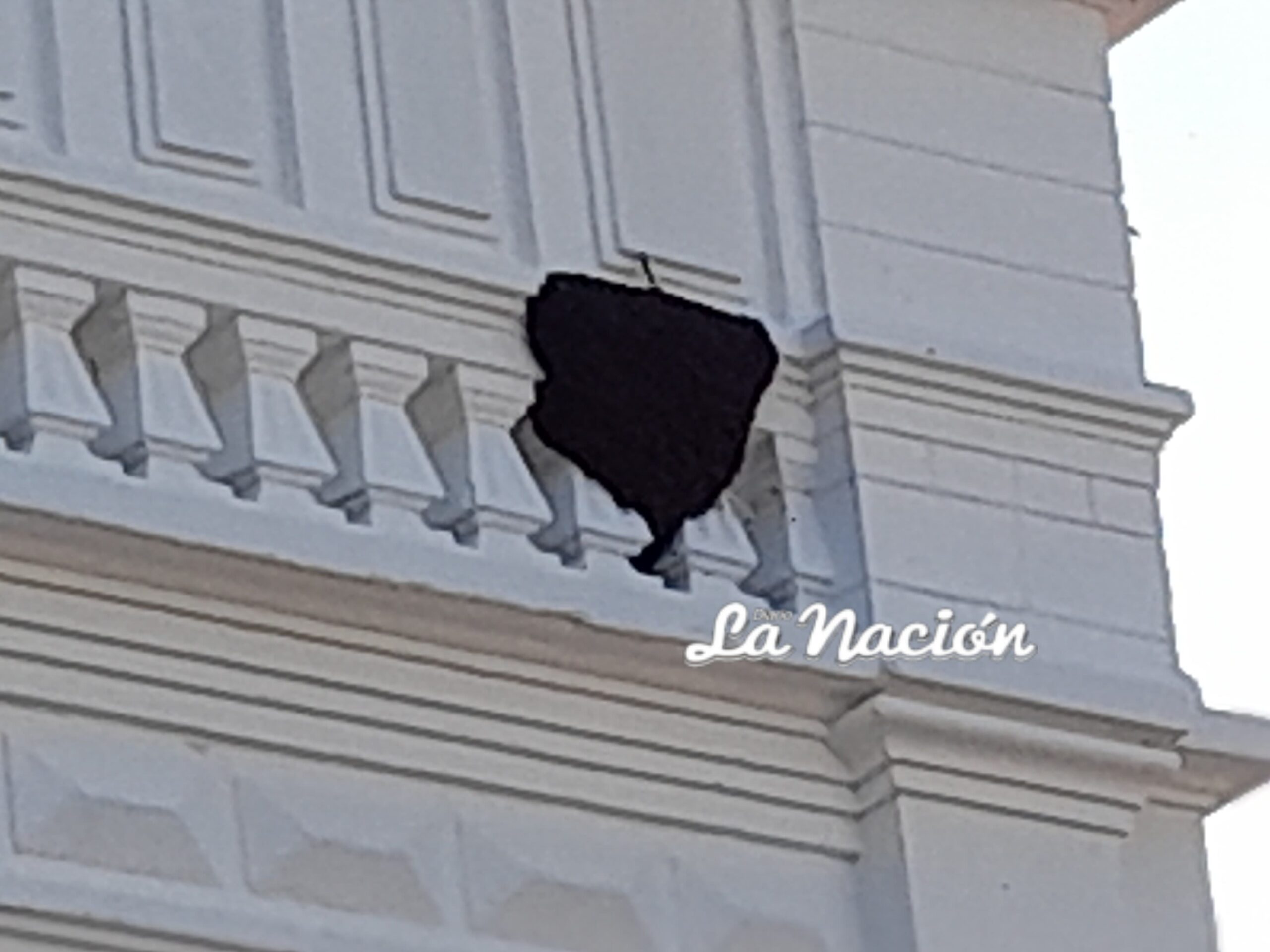 En la fachada principal se observa el enjambre, donde se pide a quienes transitan por la zona, no incomodar a los insectos hasta que acudan los organismos competentes para que lleven a cabo la reubicación del enjambre de forma segura.