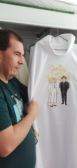 — Nosotros hacemos este aporte. Todo a la orden de los sacerdotes. A mí me encantan los colores de los hilos, el diseño, seleccionar las telas, supervisar los cortes. Yo lo disfruto mucho. He estado mal de salud, pero en oración con Dios, me pude levantar y con energía y salud logramos estos trabajos para los dos primeros santos venezolanos.