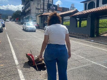 “El problema no solo ocasiona el hueco, también socava hacia dentro, cerca de una tanquilla de aguas servidas y una tubería de aguas fluviales”, explicó una señora residente de la zona.