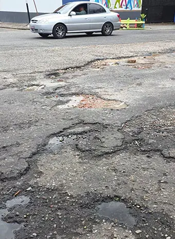 Huecos y filtraciones destruyen la avenida Lucio Oquendo