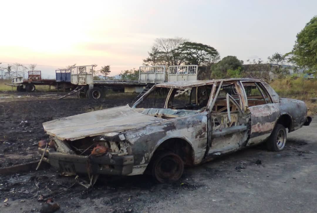 De este modo, alcanzó a un vehículo que se encontraba en la acera, a un lado del terreno, así como a seis bateas de gandolas que desde hace tiempo son estacionadas justo en medio del mismo.