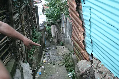 La vía peatonal se desmorona bajo los pies de los residentes. Con sacos de arena y remiendos caseros, los vecinos intentan salvar sus hogares tras más de siete años de desidia. Al menos 200 familias están afectadas