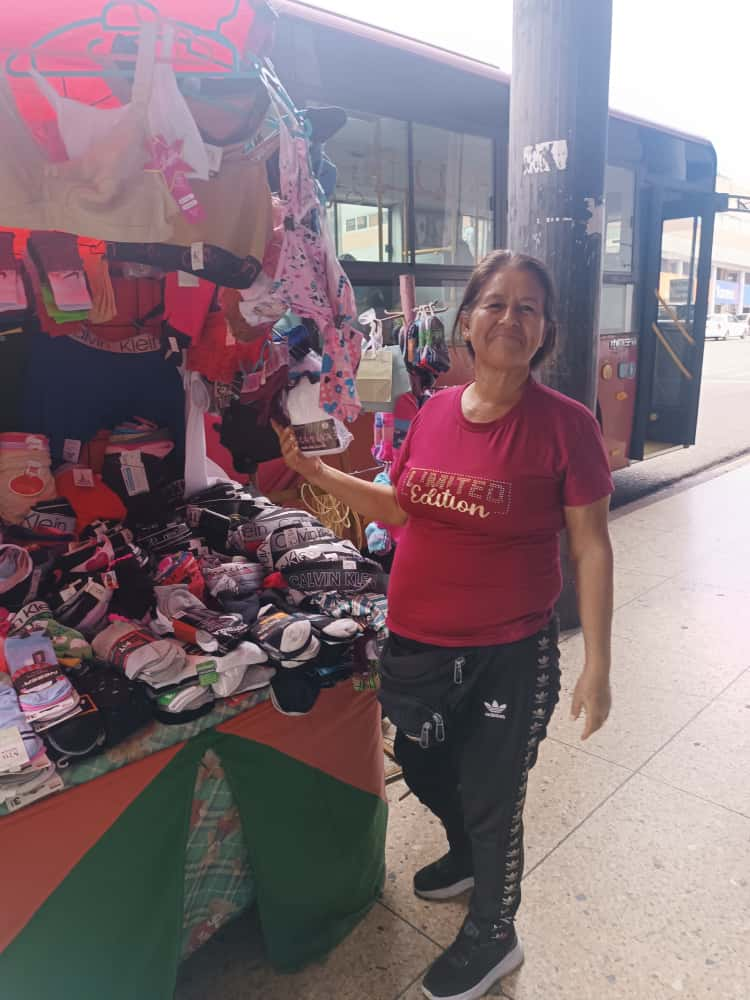 Nubia Blanco, quien vende ropa interior y tiene 35 años de experiencia, ejemplifica la adaptabilidad forzosa. Ella y su esposo criaron a tres hijos gracias a este trabajo, pero la economía los ha obligado a regresar a los productos esenciales, cada vez que la crisis aprieta.