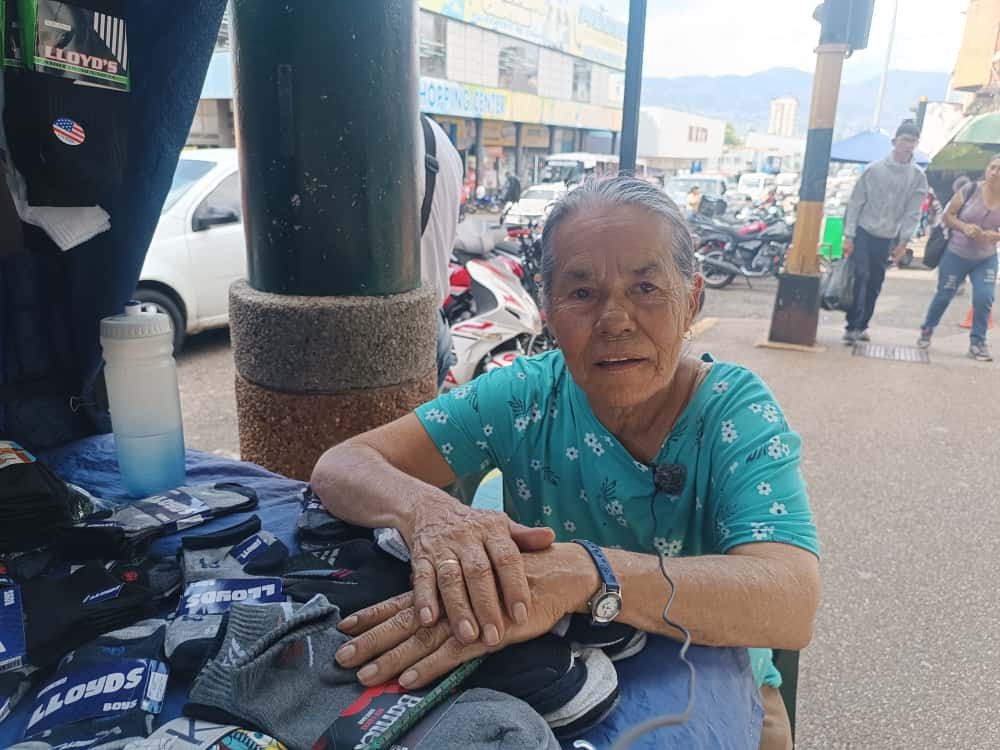 Nelly Díaz de Mantilla, con 40 años de trabajo en las calles y 25 de ellos anclada en la Quinta Avenida junto a su esposo, compara la nostalgia con la realidad: “Hace varios años sí era más fácil. Se vendía, había plata. Y ahorita lo poco que la gente consigue es para medio comer. La gente ya no se puede comprar lo que ellos desean comprar. Algo, un paquete de medias, unos bolsos, ya no se puede más”.