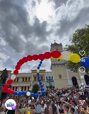 En la plaza Bolívar, los niños de la catequesis lanzaron un rosario de globos al cielo como símbolo de fe, amor y esperanza por la paz de todos los venezolanos.