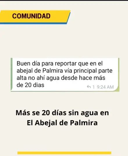 Habitantes de El Abejal, en Palmira, municipio Guásimos, denuncian que suman más de 20 días con los grifos secos. Aseguran que no sale ni una gota de agua.
