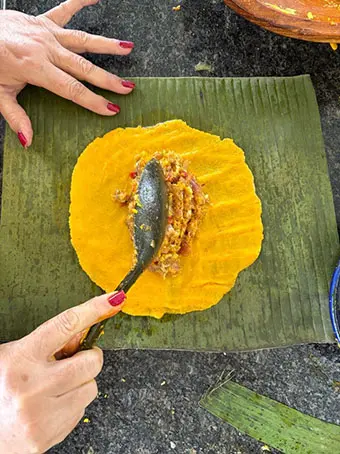 En el centro del país: Predomina la versión tradicional que combina cerdo, pollo, carne, aceitunas y pasas, en una armonía perfecta de sabores dulces y salados.