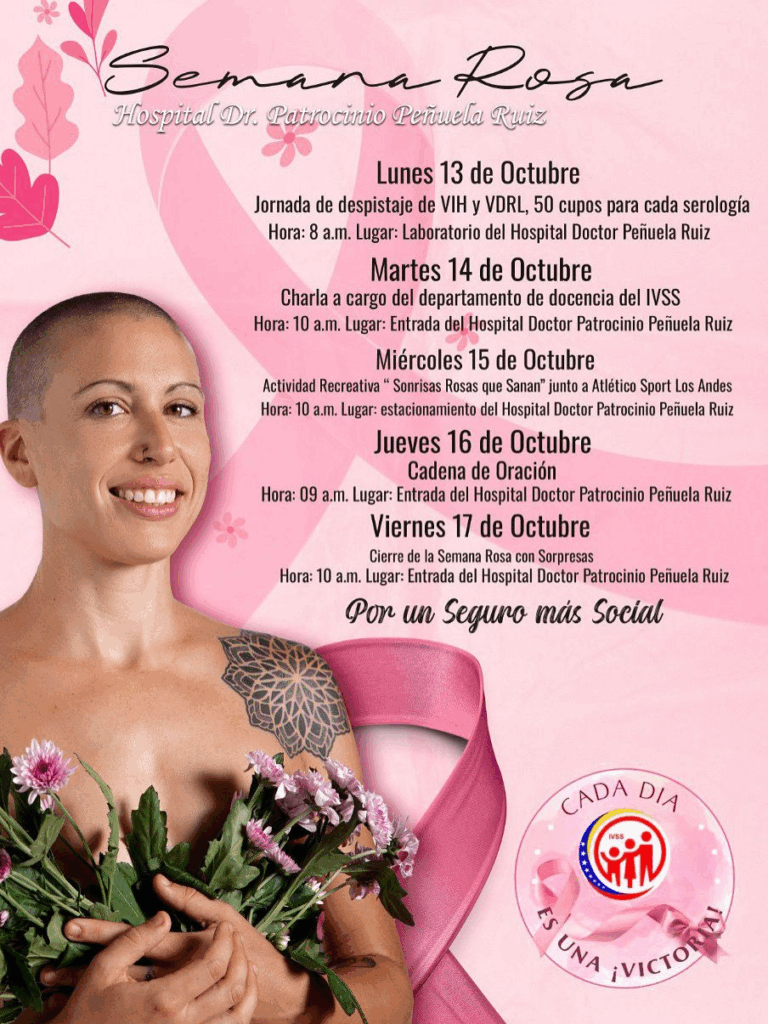 Con una amplia programación, el Hospital Doctor Patrocinio Peñuela Ruiz, Seguro Social, iniciará este lunes, 13 de octubre, la Semana Rosa, a propósito del Día…