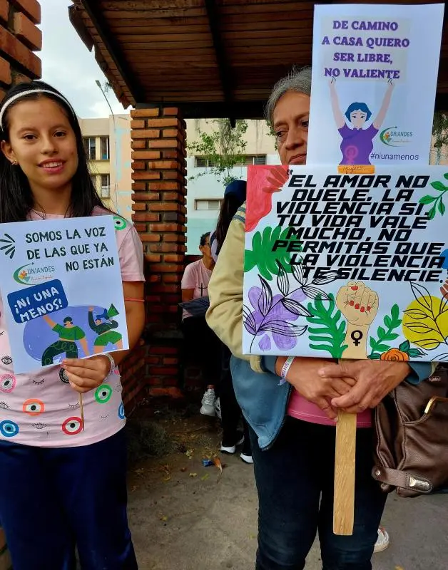 En los carteles, todas tenían algo que decir: “No nacemos valientes, nos volvemos valientes, Sé la mujer que quieres ser, No es amor, es control, Queremos vivir sin miedo, De camino a casa quiero ser libre, no valiente, Somos el grito de las que ya no están, Nos sembraron miedo, nos crecieron alas, Los derechos de las mujeres y niñas son derechos humanos”.