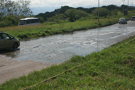 En el destrozo en el pavimento, muestra en la superficie los daños del desagüe; pero es de sospechar que las tuberías que pasan por debajo de la autopista también cedan por la presión, generando un problema mayor.