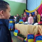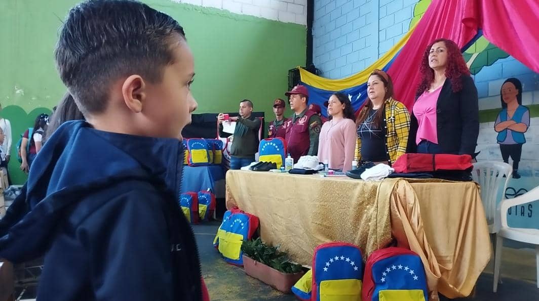 En el acto hizo entrega del morral tricolor contentivo de uniforme, calzado y útiles para los escolares de la EB Pedro María Morantes.