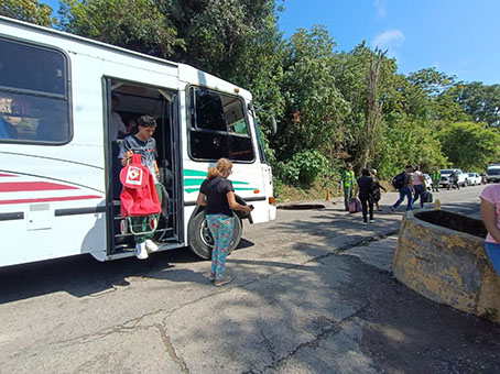 Las personas deben bajarse de las busetas varios metros antes de la zona afectada y caminar al otro lado para esperar que la unidad pase vacía y volver a subir para continuar el camino.
