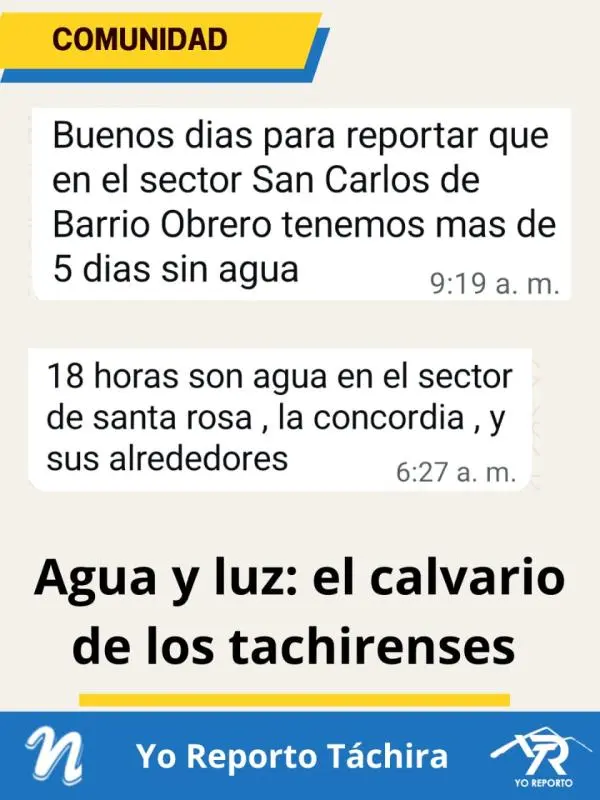 Segun reportan los infociudadanos, pasan días sin poder asearse, cocinar o mantener la higiene básica en sus hogares.