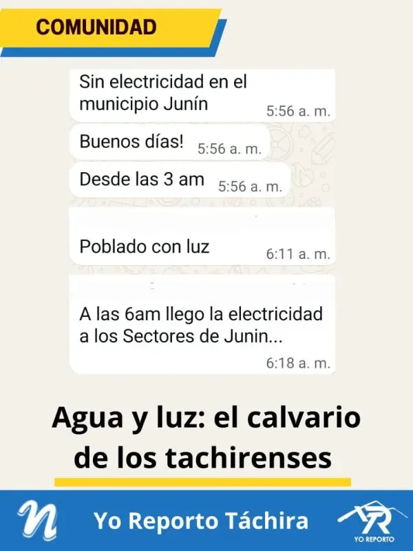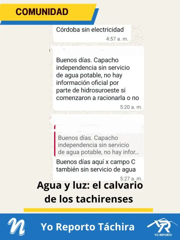 Los habitantes del estado Táchira enfrentan una de las etapas más críticas de las últimas semanas. Los cortes de energía eléctrica, que superan, en muchos casos, las 12 horas diarias, en algunos sectores, ahora coinciden con una severa escasez de agua potable por tubería. Esta situación paraliza el comercio, la educación y la vida cotidiana de las familias tachirenses.