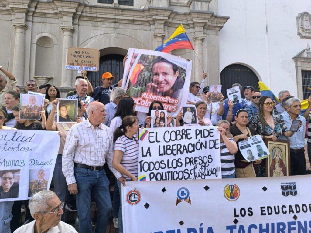 En medio de la consigna ¡justica y libertad! y el ¡Gloria al Bravo Pueblo! este sábado 7 de febrero, la sociedad civil tachirense respondió al llamado del Cardenal Baltazar Porras y se reunió en la plaza Juan de Maldonado de San Cristóbal para elevar una oración en respaldo a los familiares de los 687 presos políticos, entre ellos 87 mujeres, que aún registra el Foro Penal Venezolano.