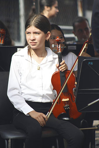 María José Gamez, cursa segundo año de violín, que dicta el profesor Marcos Sayago. “Con este evento en Roma, sus sueños se están haciendo realidad, como es tocar en Europa,  pertenecer al Sistema y a la EMMAE”, dijo Soraya Moros, madre de la destacada estudiante.