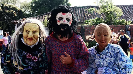 A lo largo del corto van apareciendo una serie de personajes propios de Palmira, quienes nos van recordando que en dicha población se viven las navidades más festivas con sus misas de aguinaldos, posadas, capitanías, quemas de año viejo y por supuesto sus disfrazados, símbolos de la piedad religiosa y al tiempo del desenfreno.