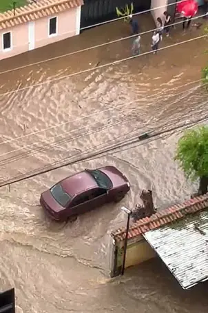 La acumulación de desechos en el embaulado que pasa por Residencias La Hacienda, urbanización Coromoto y barrio Las Flores, transformó las calles en ríos, este sábado. Los vecinos denuncian que un tronco y un colchón obstruyen el paso del agua desde hace unas dos semanas